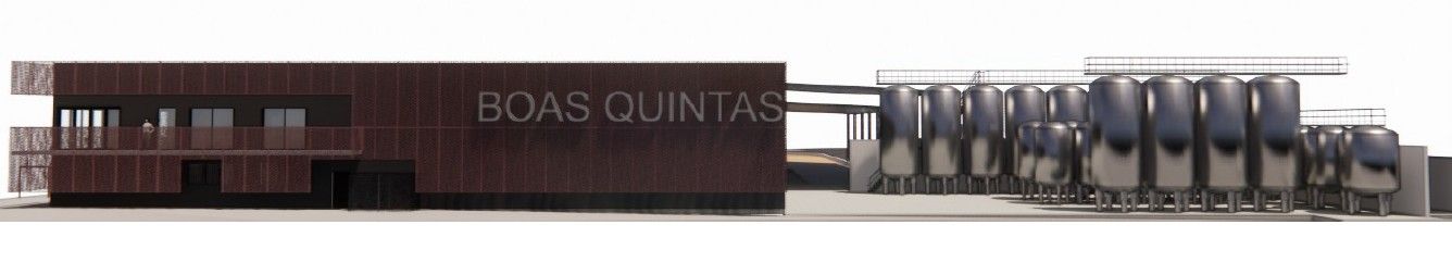 Iniciamos a empreitada de ampliação da Adega Boas Quintas, sito em Mortágua. Genericamente, o projeto prevê a reabilitação do edifício existente e ampliação da adega que irá ocupar a zona mais a norte do terreno, onde atualmente se encontra como espaço livre de circulação pedonal e para viragem de camiões e carros. O novo edifício irá interligar com o edifício existente tornando-o num só edifício com uma área de aproximadamente 3200 m².